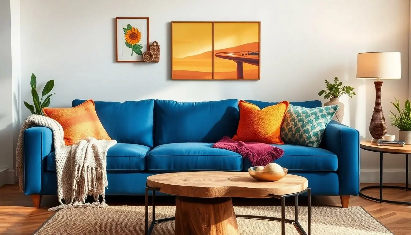 Eclectic living rooms showcase vibrant personality through mixed styles. A blue couch serves as a dynamic centerpiece, inviting creativity. Bold patterns on surrounding textiles can play off the couch’s color, ensuring a harmonized yet playful feel. Accessories like an ornate coffee table or whimsical art pieces offer unexpected contrasts. This style celebrates diversity, encouraging unique combinations that reflect individual tastes.